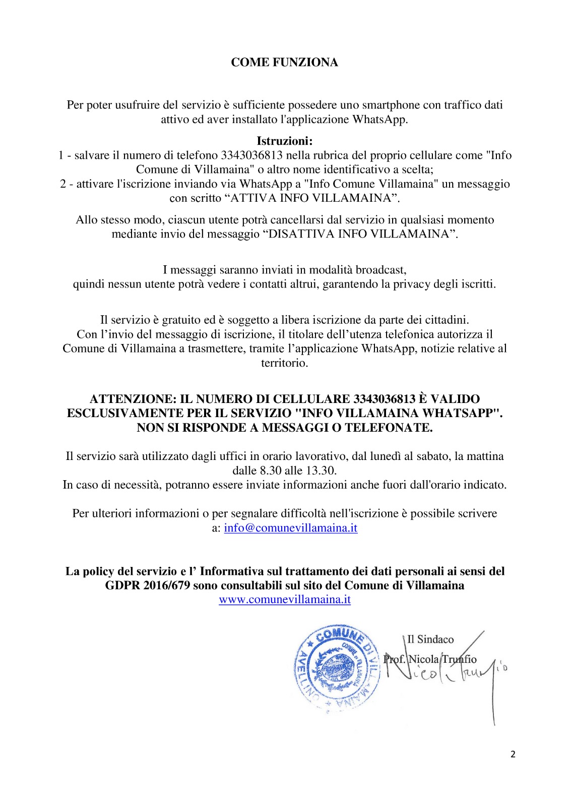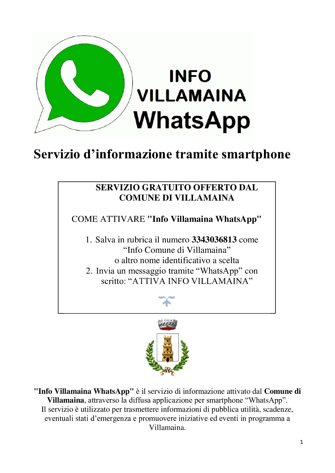 “INFO VILLAMAINA WhatsApp” Servizio di informazione tramite smartphone