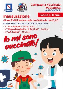 Partirà dal 16 dicembre 2021 la Campagna Vaccinale Anti-Covid 19 promossa dall’Asl di Avellino per la fascia di età dai 5 agli 11 anni.